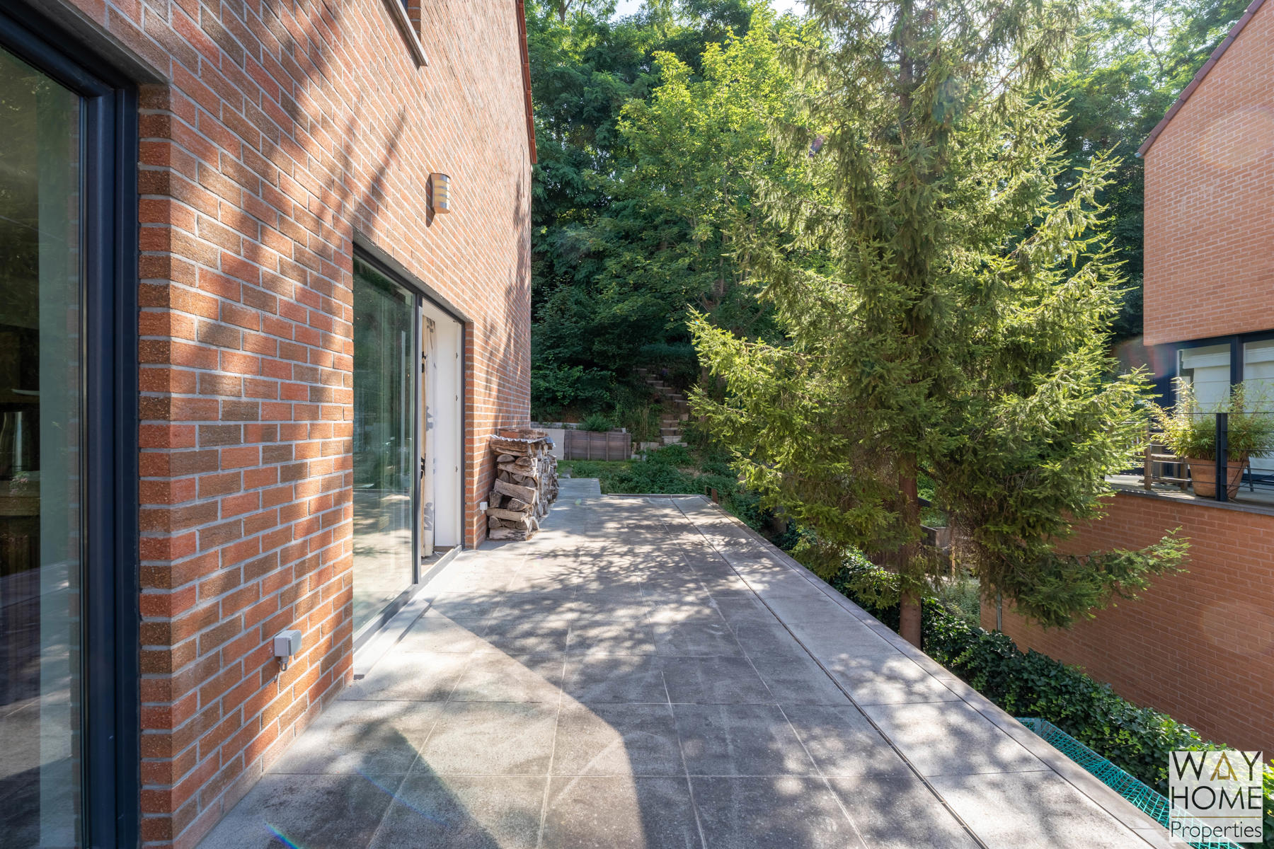 BRIGHT house semi-detached house (3 facades), end of the construction 2015, +/- 200m2 net and +/- 240 m2 brut, near Vivier d’Oie and the transportation, 7 min by car from the French school. Energy-efficient house with solar panels, VMC