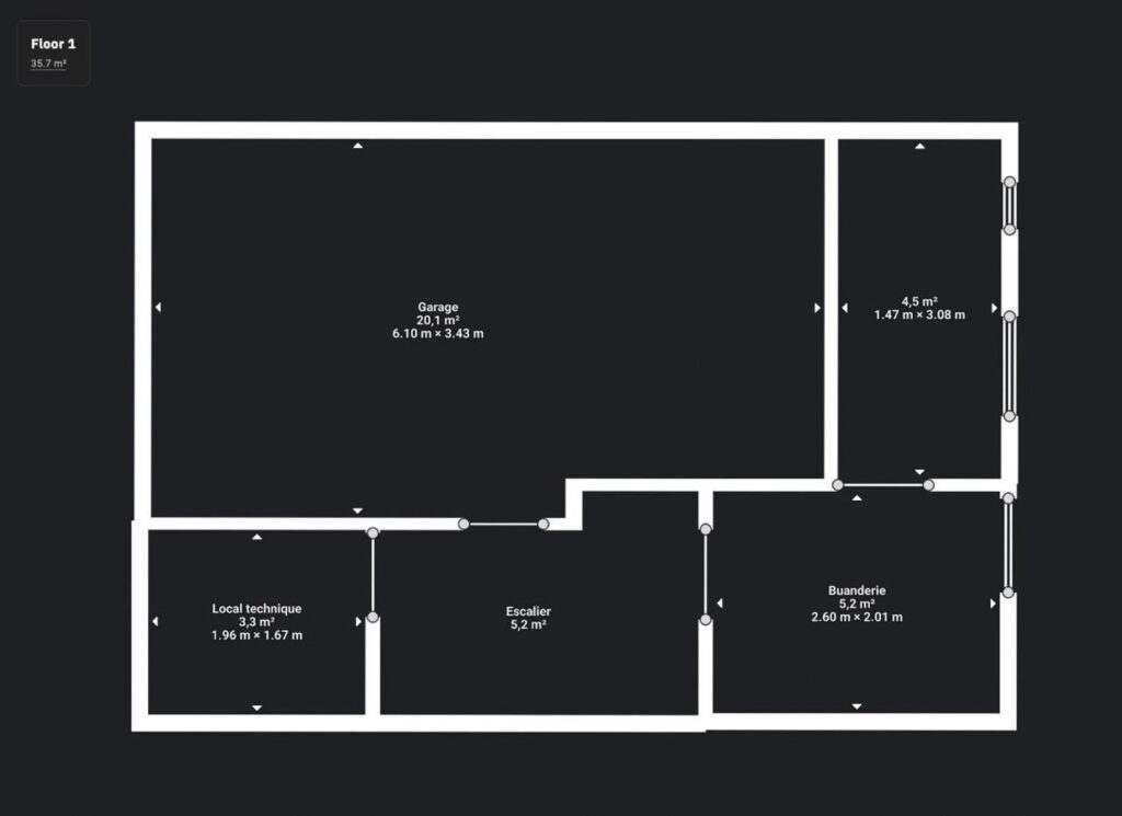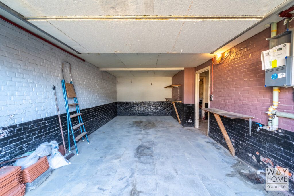 In the basement, the house has a garage, a laundry room and direct access to the garden.