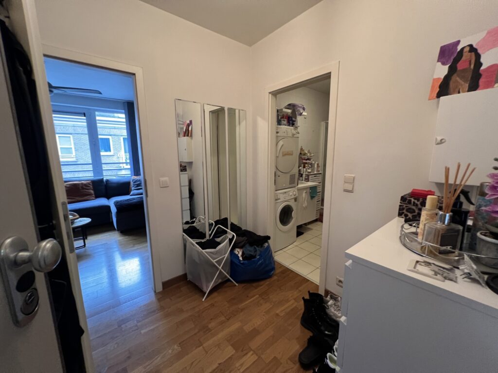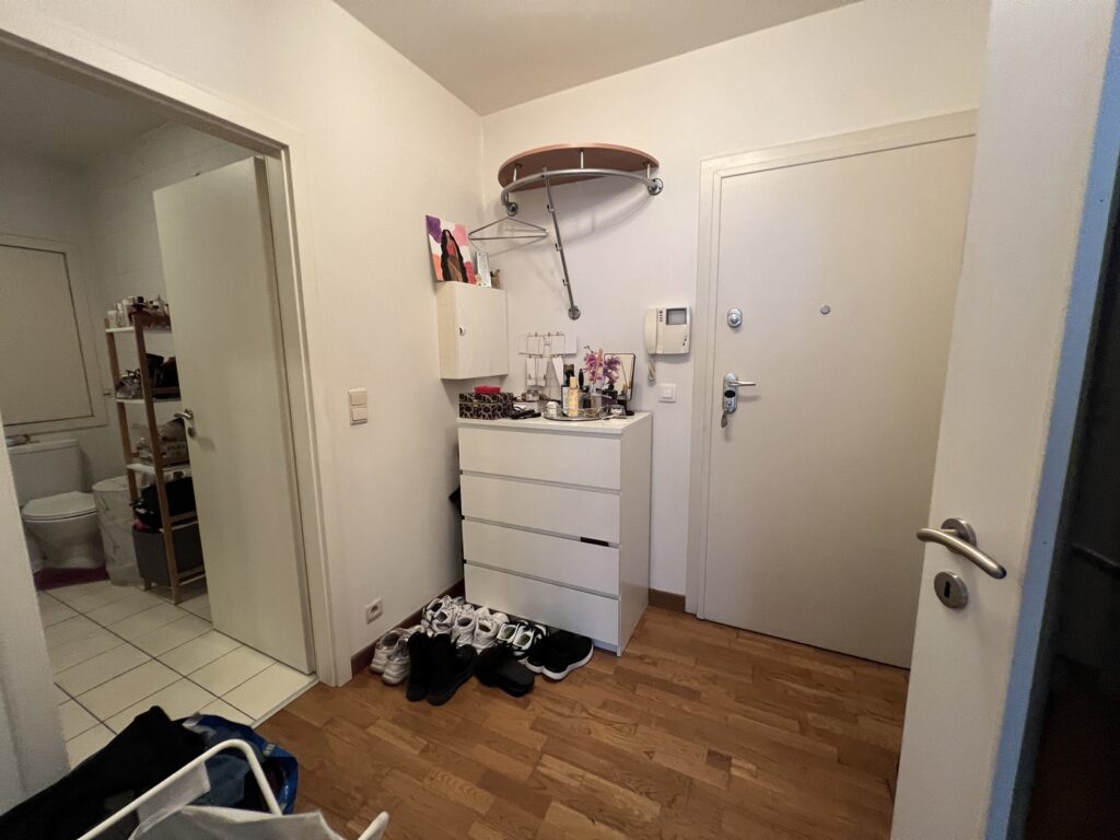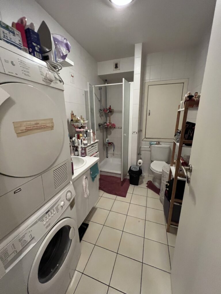 Il comprend : hall d’entrée (porte blindée), spacieux séjour-salle à manger, salle de douche, lavabo et wc (avec lave-linge et sèche-linge).