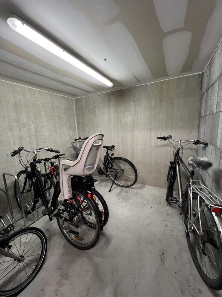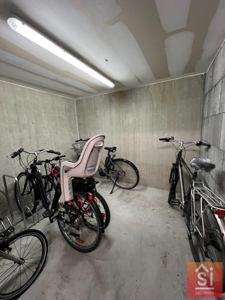 Cuisine équipée (évier double-bac, frigo-congélateur, four micro-ondes, taque de cuisson vitrocéramique).Grands placards.Local vélos, cave individuelle et emplacement parking.