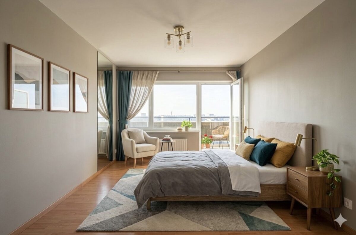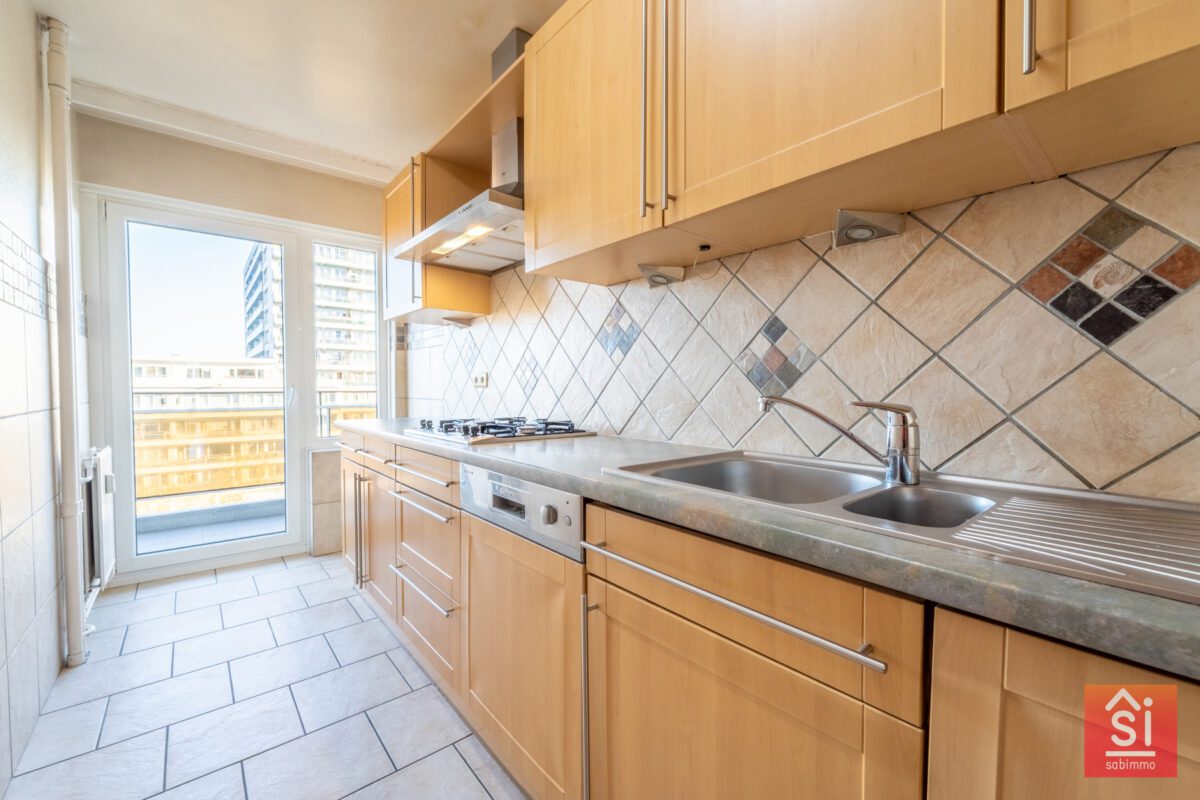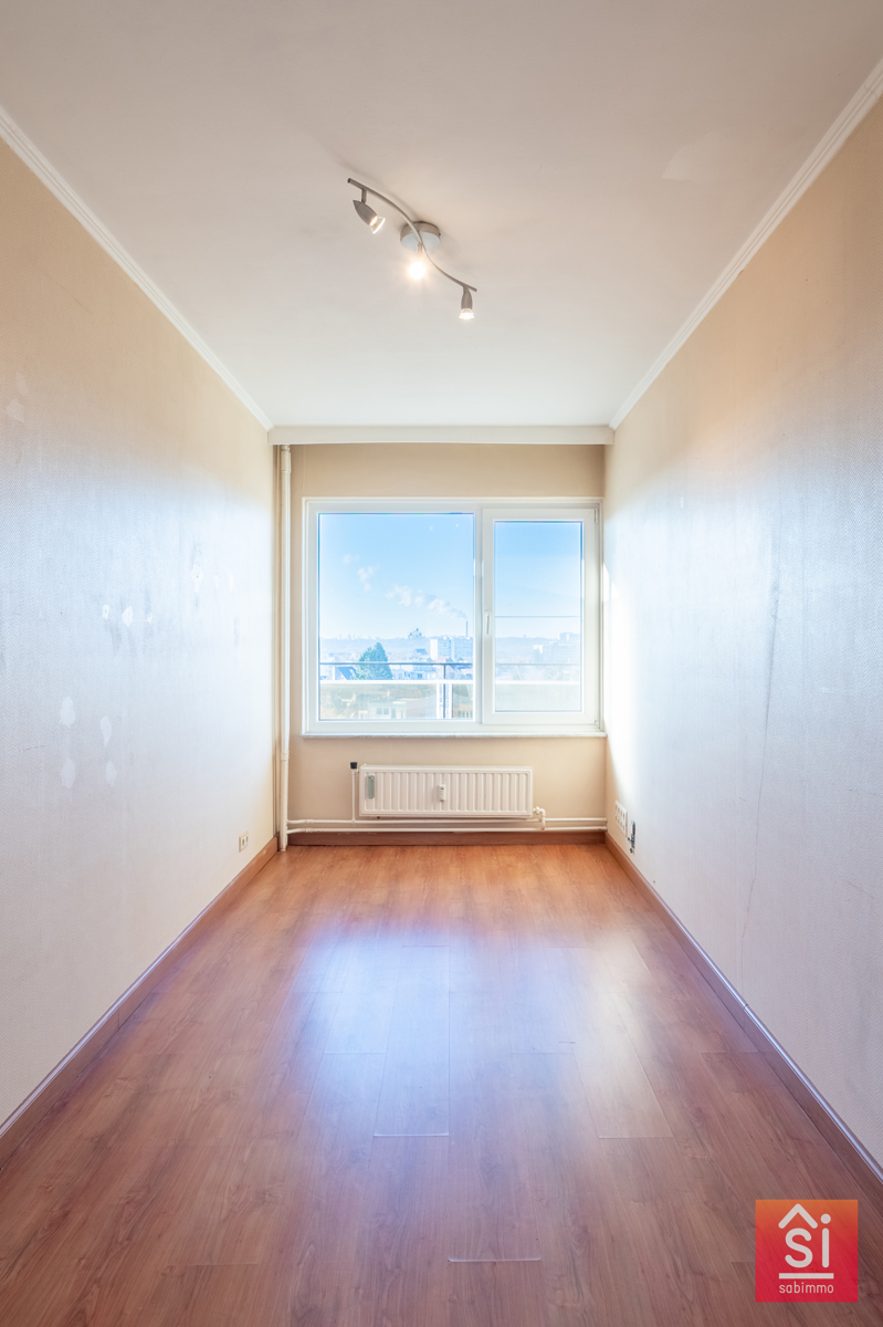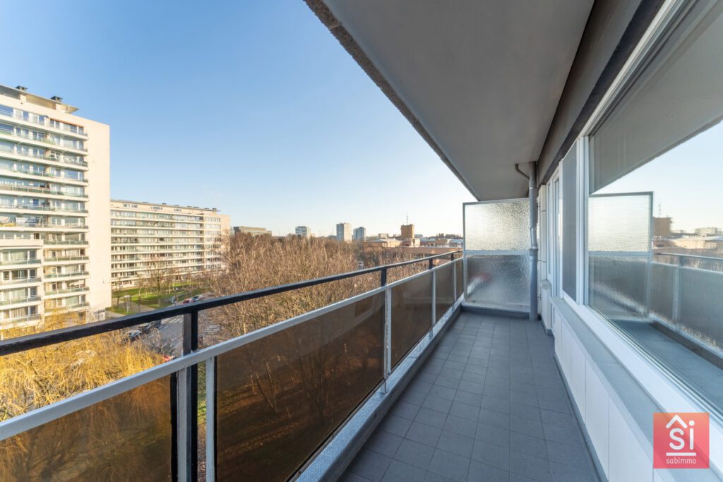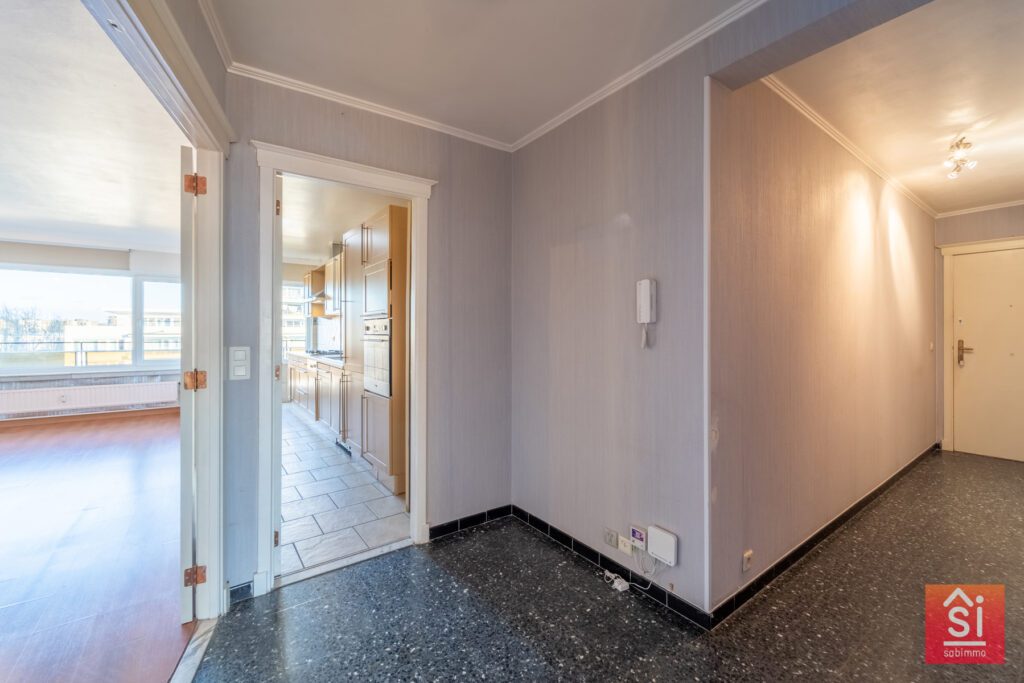 Au 5ᵉ étage d’un immeuble à appartements soigné et parfaitement entretenu, cet appartement lumineux d’une superficie de ±100 m² selon le PEB offre un cadre de vie confortable et fonctionnel. Dès l’entrée, un hall de ±8 m² accueille les visiteurs et distribue intelligemment les espaces de vie. Celui-ci donne accès à une cuisine équipée de ±10 m², ainsi qu’à un spacieux séjour de ±30 m² baigné de lumière naturelle, prolongé par une agréable terrasse avant de ±8 m², idéale pour les moments de détente en extérieur.