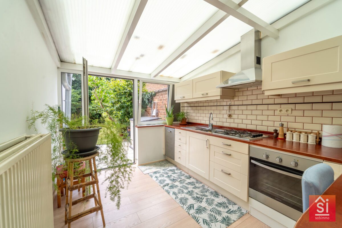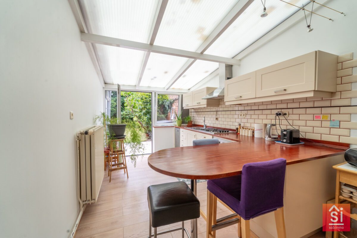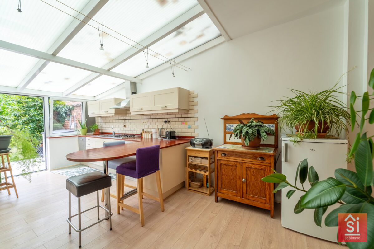 La cuisine équipée, installée sous une véranda, constitue un véritable atout : baignée de lumière naturelle, elle devient un espace de vie convivial et chaleureux. Le séjour offre de beaux volumes et une atmosphère paisible.