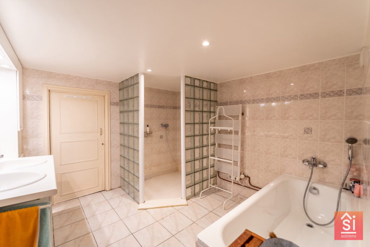 La salle de bain propose à la fois une douche et une baignoire, et le WC séparé assure un confort supplémentaire au quotidien.